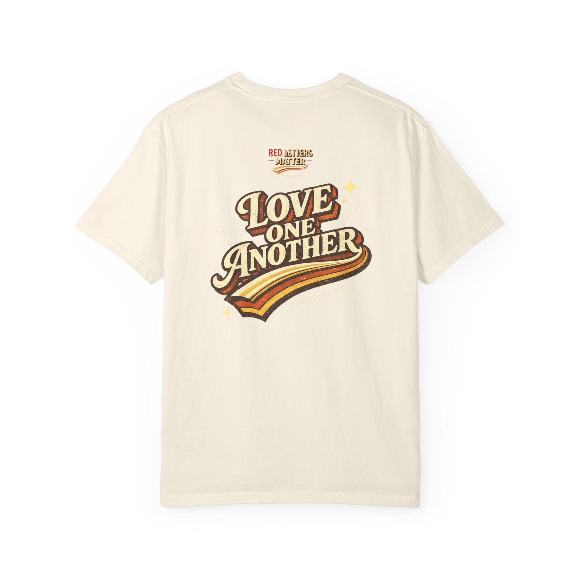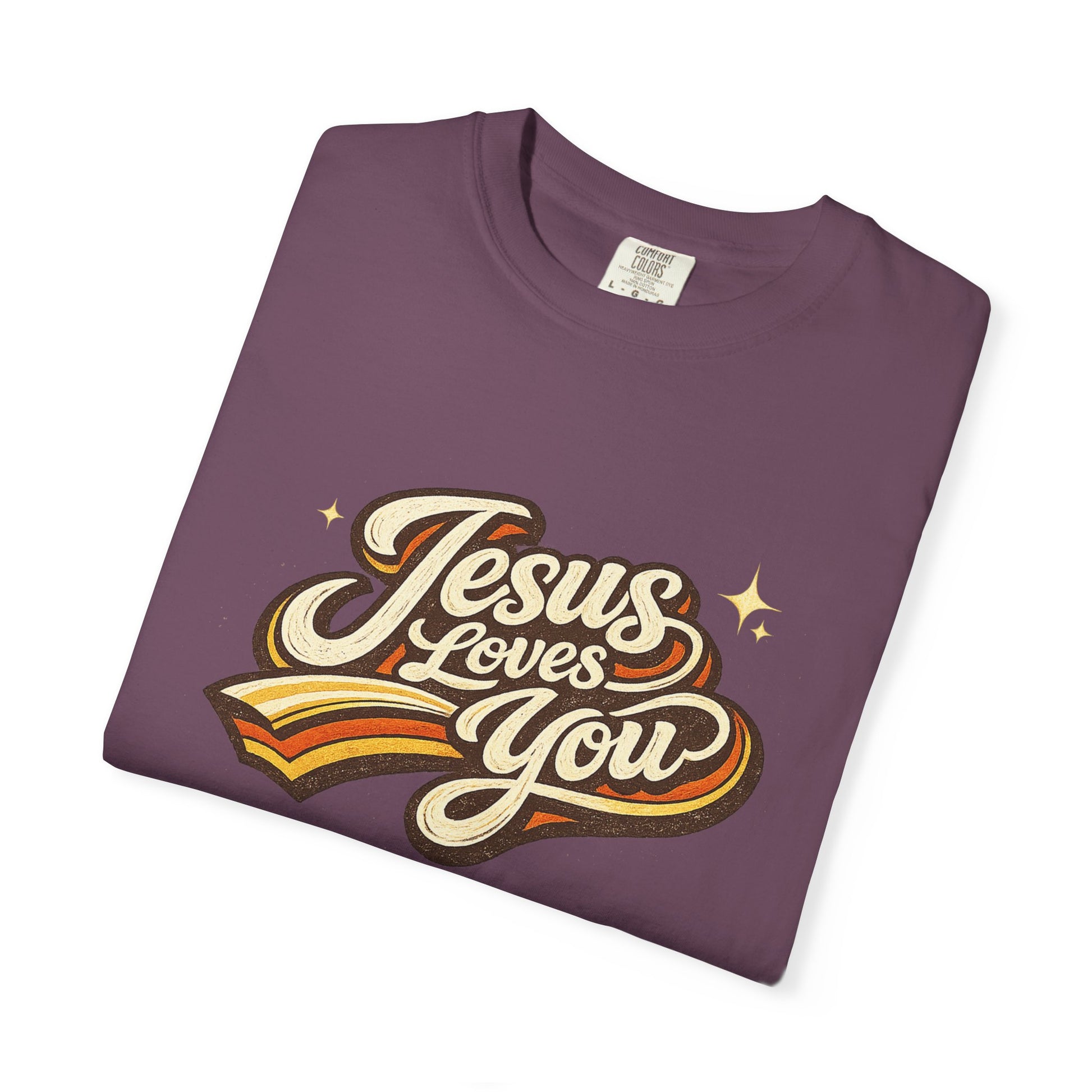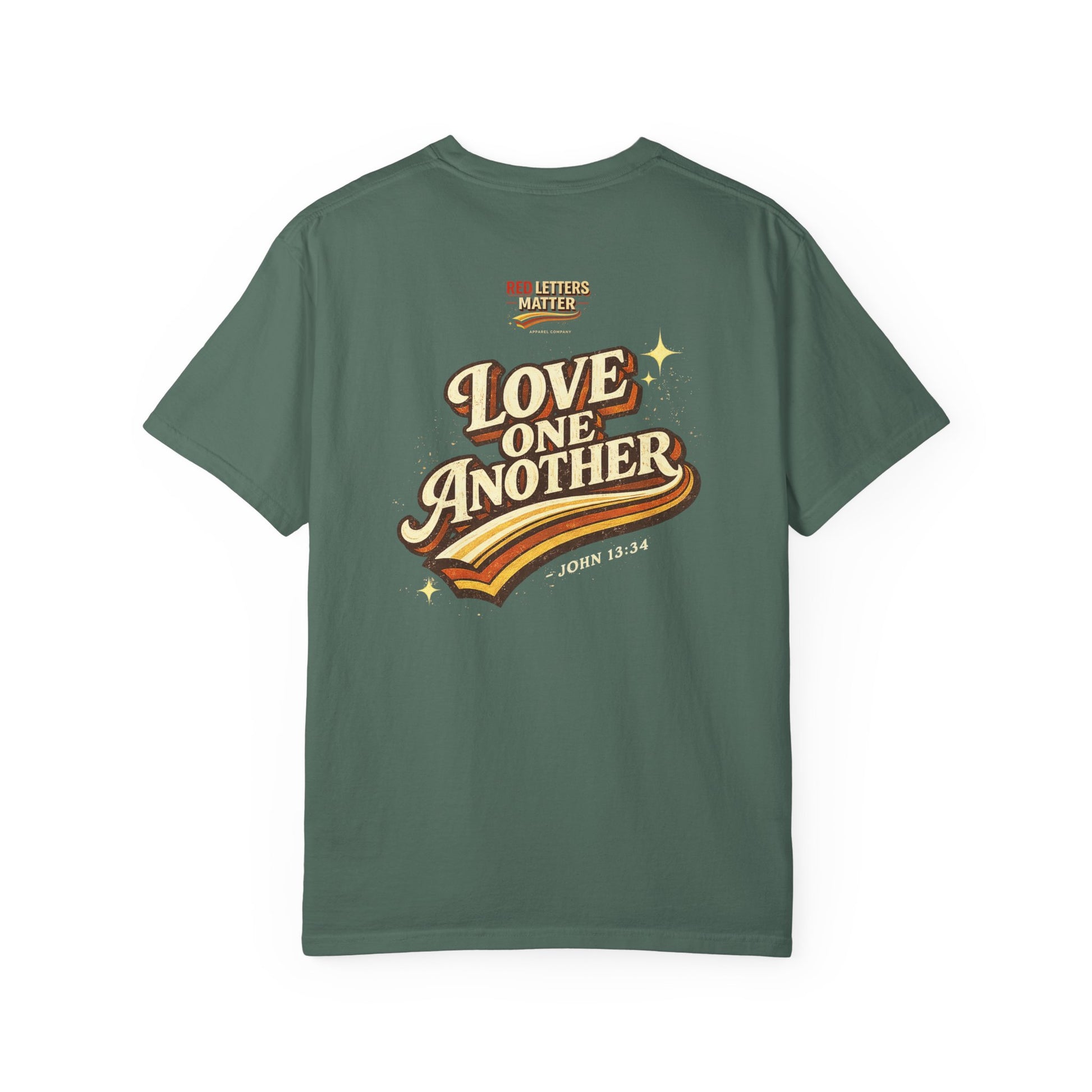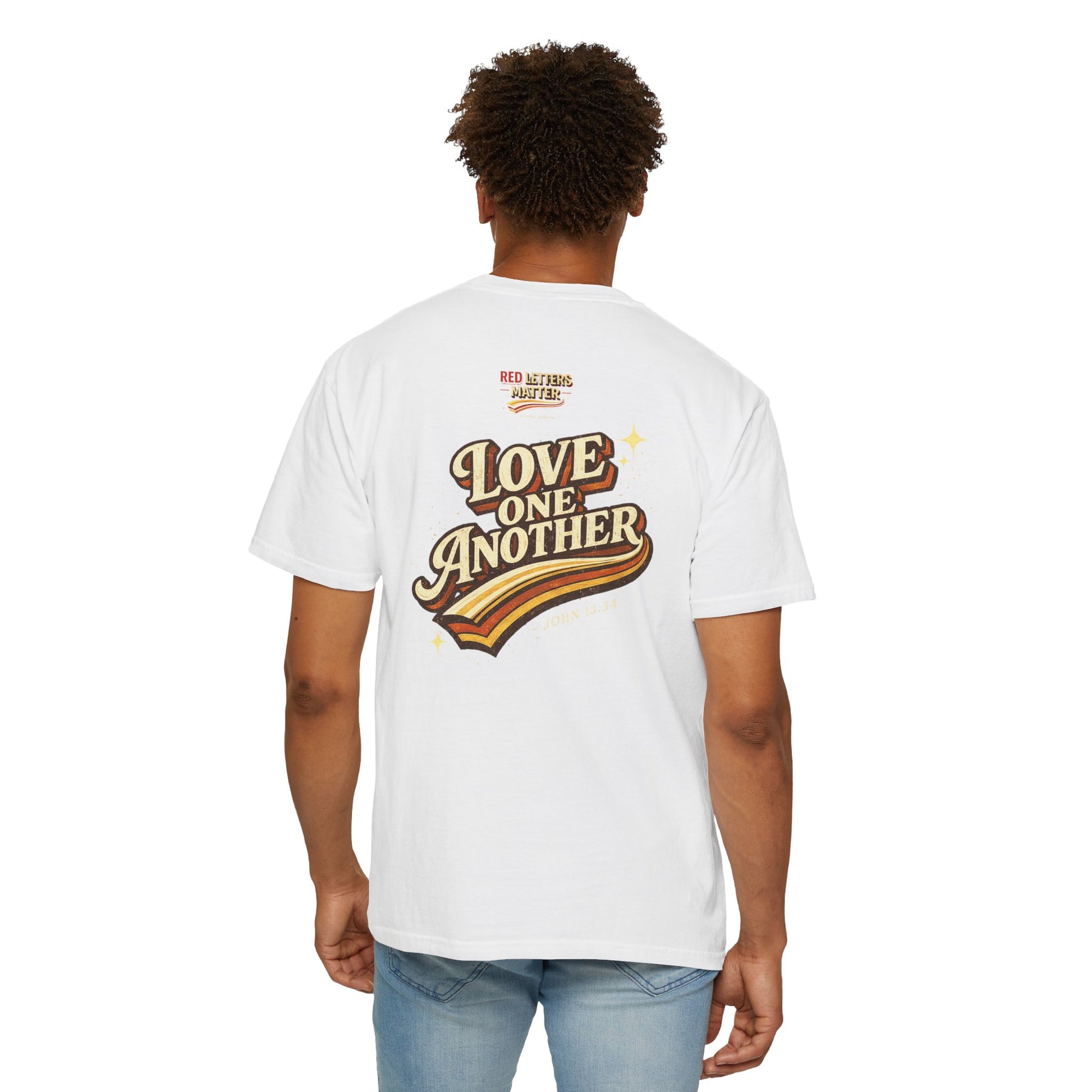 A soft, garment-dyed tee that wears like a cherished message. This relaxed-fit shirt folds easily into quiet mornings and loud worship nights alike — a gentle, lived-in canvas for the simple statement: Jesus Loves You / Love One Another. The heavyweight cotton feels substantial without being stiff; the post-construction dye gives muted, soulful tones and a texture that invites touch. Reinforced double-needle seams and a tubular, side-seam-free body mean the shirt keeps its shape and looks clean across many wears. Sized broadly and pre-shrunk, it’s built to be worn during community gatherings, volunteer days, worship services, or just on a slow Sunday sitting with friends and coffee.